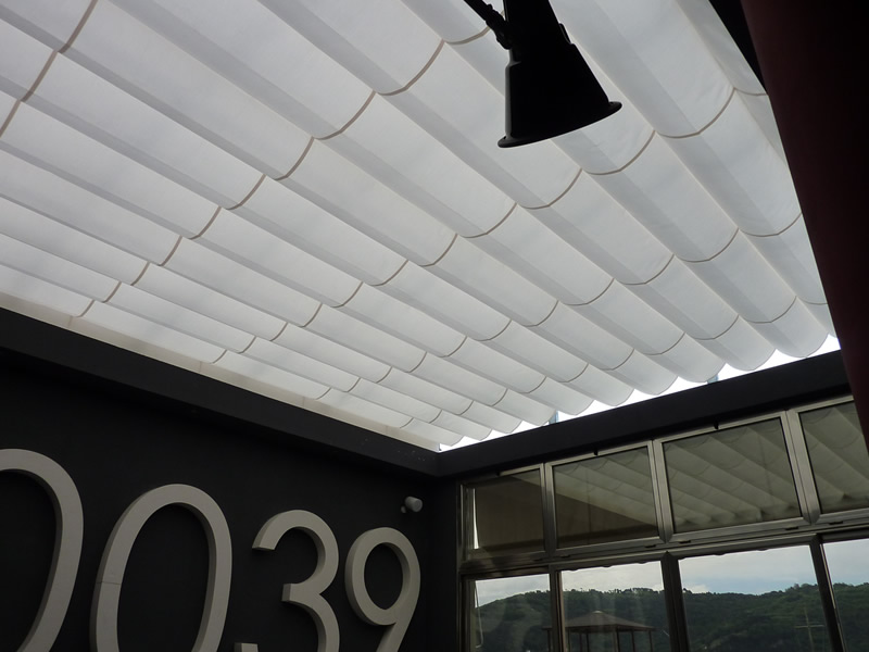 E' stata eliminata la caratteristica di lucidità tipico del PVC per ottenere un effetto più naturale; inoltre la spalmatura nera presente all'interno del tessuto blocca i raggi del sole e mantiene rinfrescato l'ambiente sottostante.