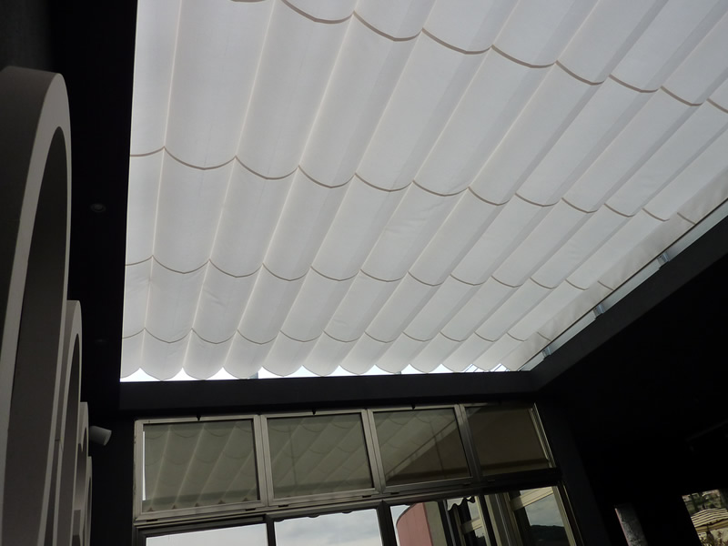 Caratteristica inconfondibile di Mediterranea è l'effetto scenografico del telo che crea ambienti suggestivi e accoglienti, per un nuovo modo di vivere all'aperto.
